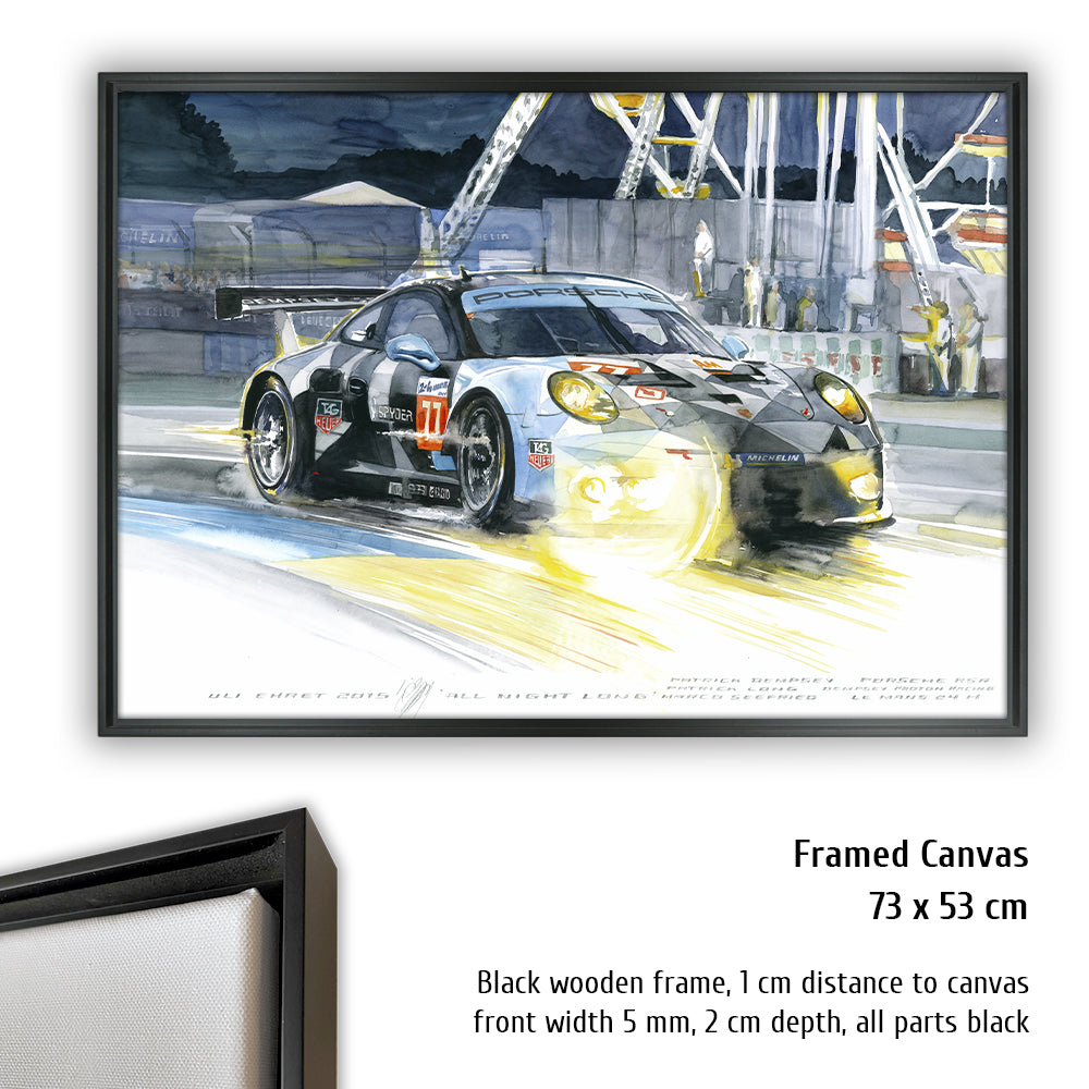 La grande roue au bord de la piste n'est qu'un accessoire lorsque la magnifique Porsche 911 GT3 RSR de l'équipe Dempsey Proton Racing, conduite par le double talent du pilote de course et acteur Patrick Dempsey, soutenu par le pro du football Alessandro del Piero, passe le Chicane Ford de nuit . Dempsey et les membres de l'équipe Joe Foster et le pilote d'usine Porsche Patrick Long ont vu le drapeau à damier à une respectable quatrième place dans leur catégorie - soutenus par l'équipe de course expérimentée de Proton Competition.
